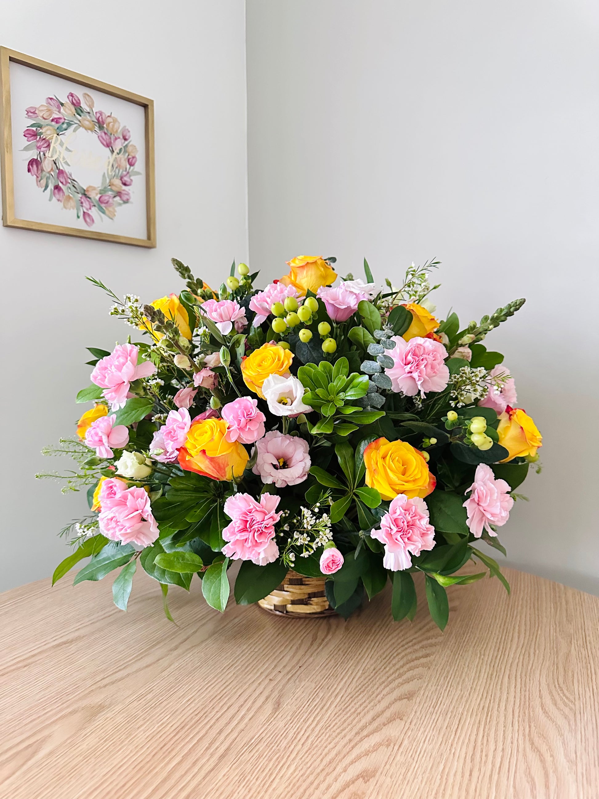 Surprise someone special with our Blossom Elegance Basket — a luxury floral arrangement in a basket that blends elegance, freshness, and natural charm.