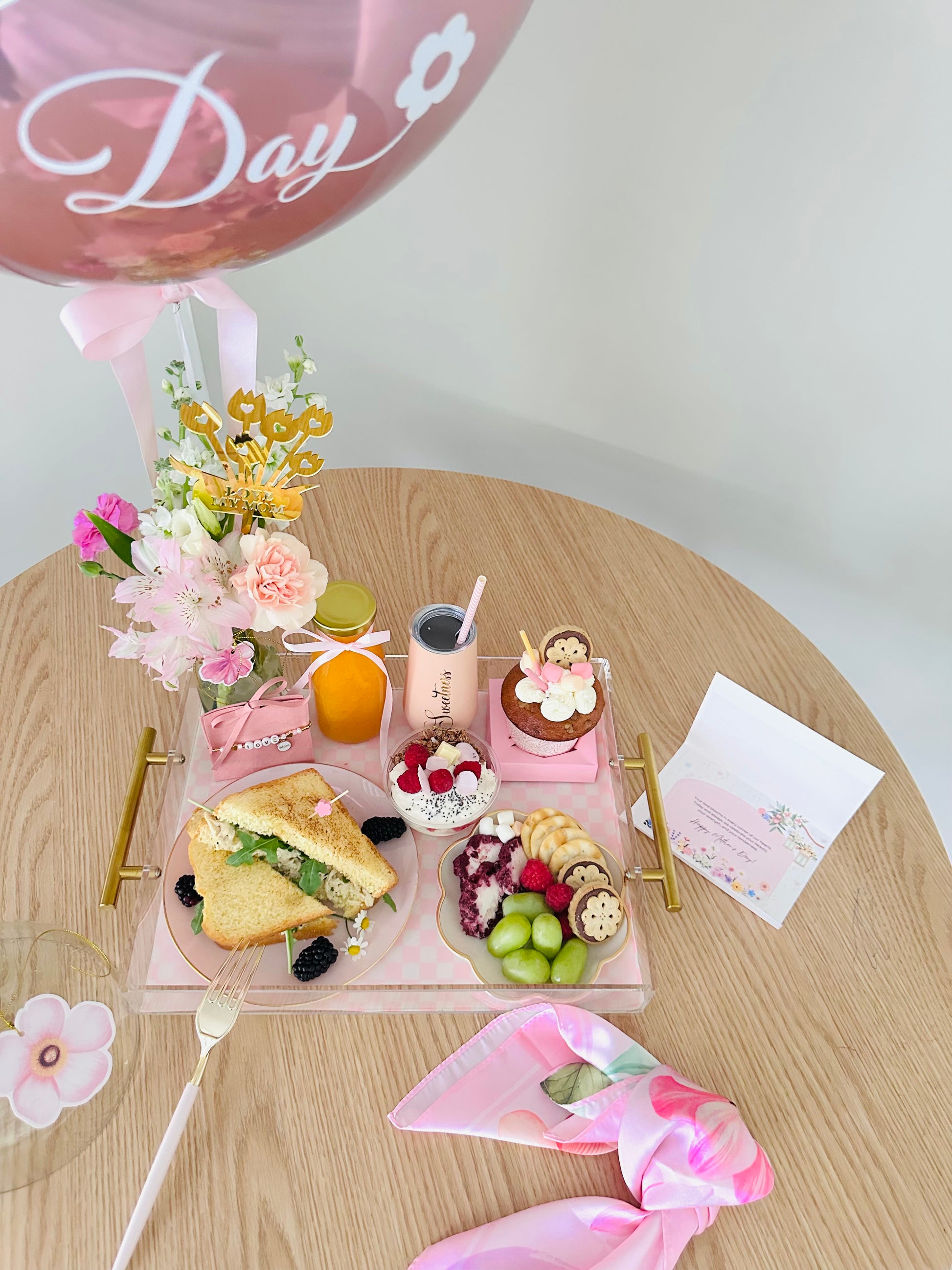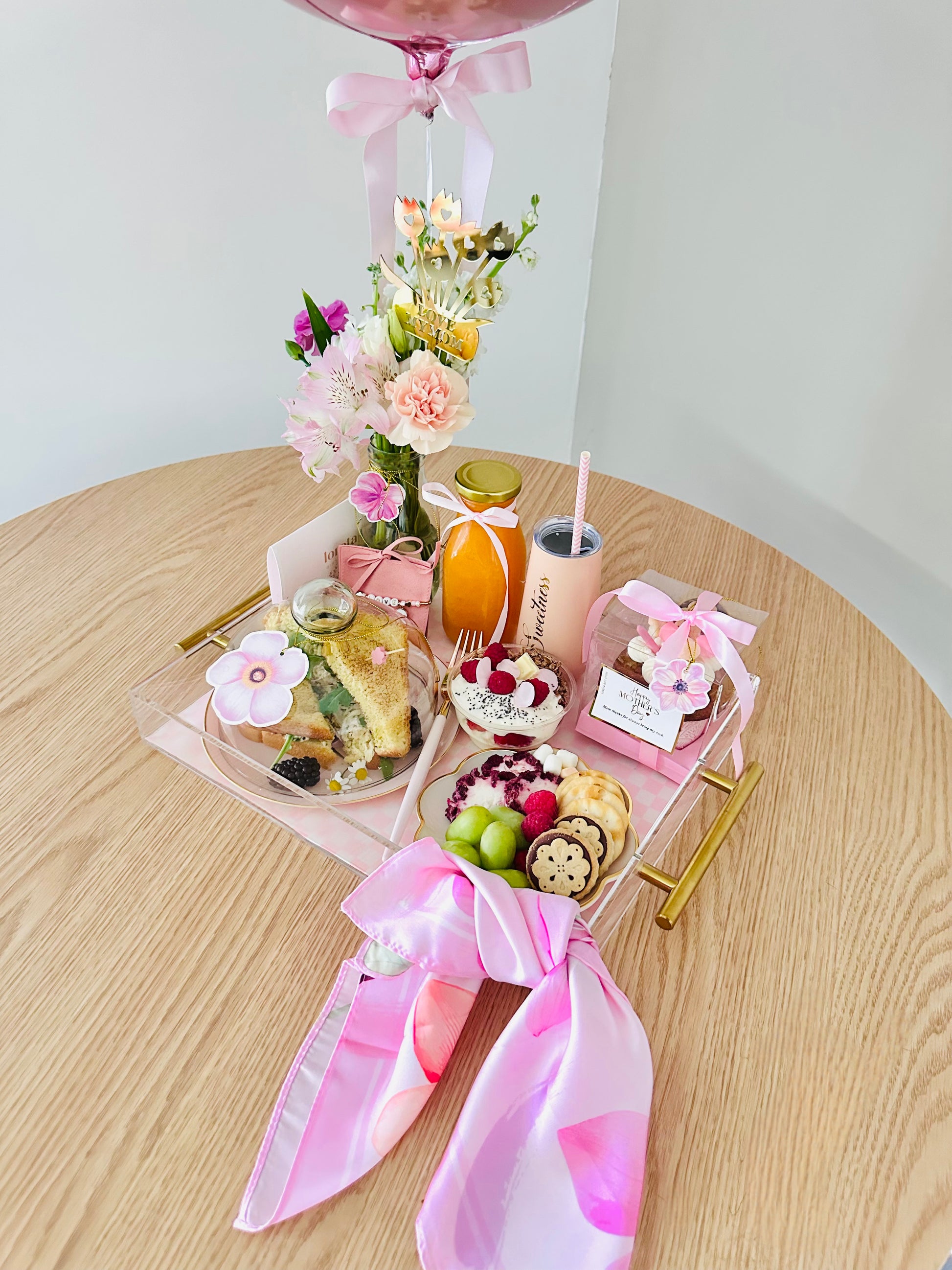 El Desayuno La Gomera es una de nuestras opciones más elegantes para tener una experiencia que combina sabor y sofisticación. Presentado en una elegante bandeja de acrílico transparente para sorprender a tus seres queridos con un toque de lujo en la mañana. Incluye una botella de champaña mini y jugo de naranja natural para preparar una mimosa al instante y globos de inspiración.