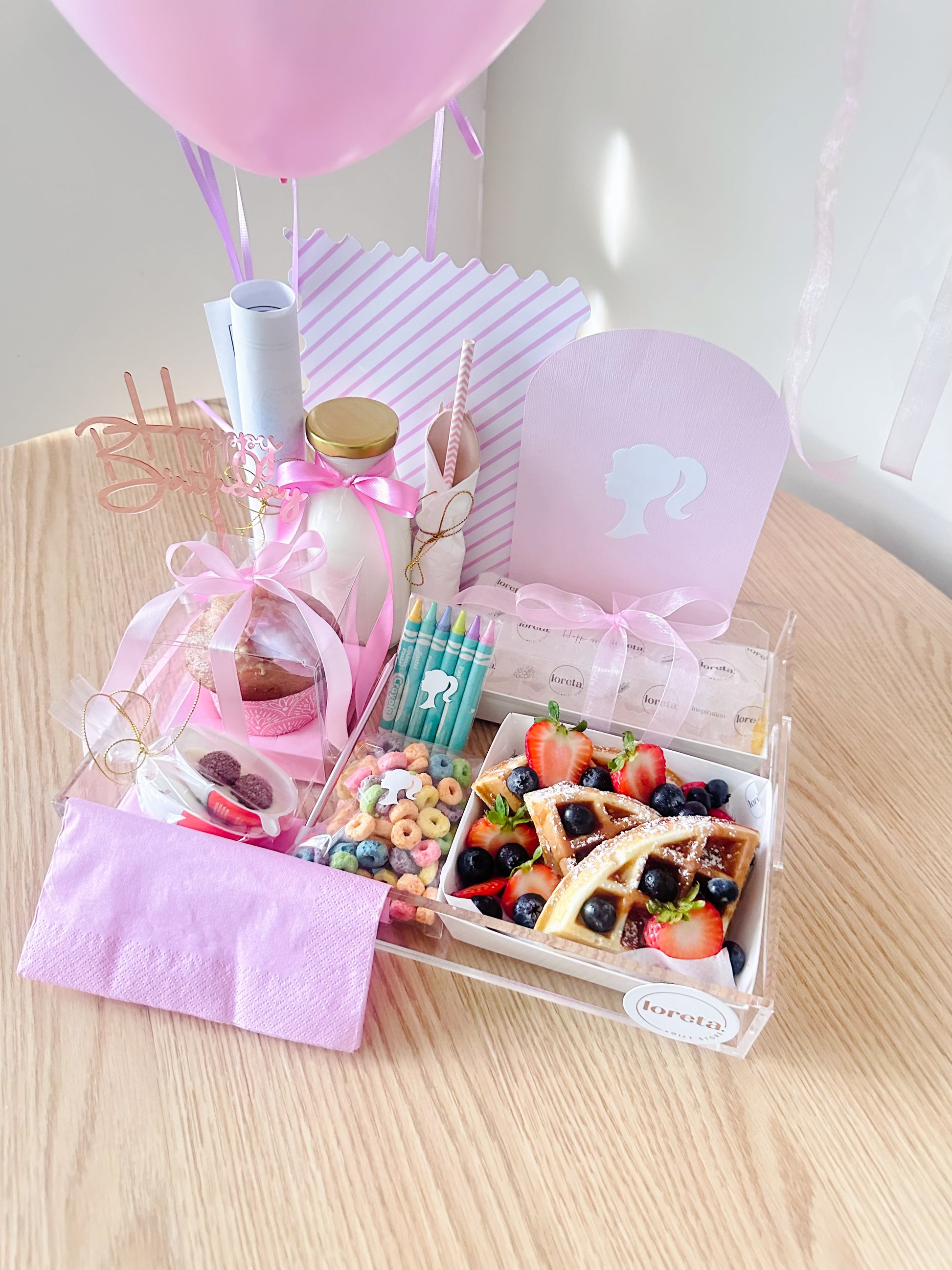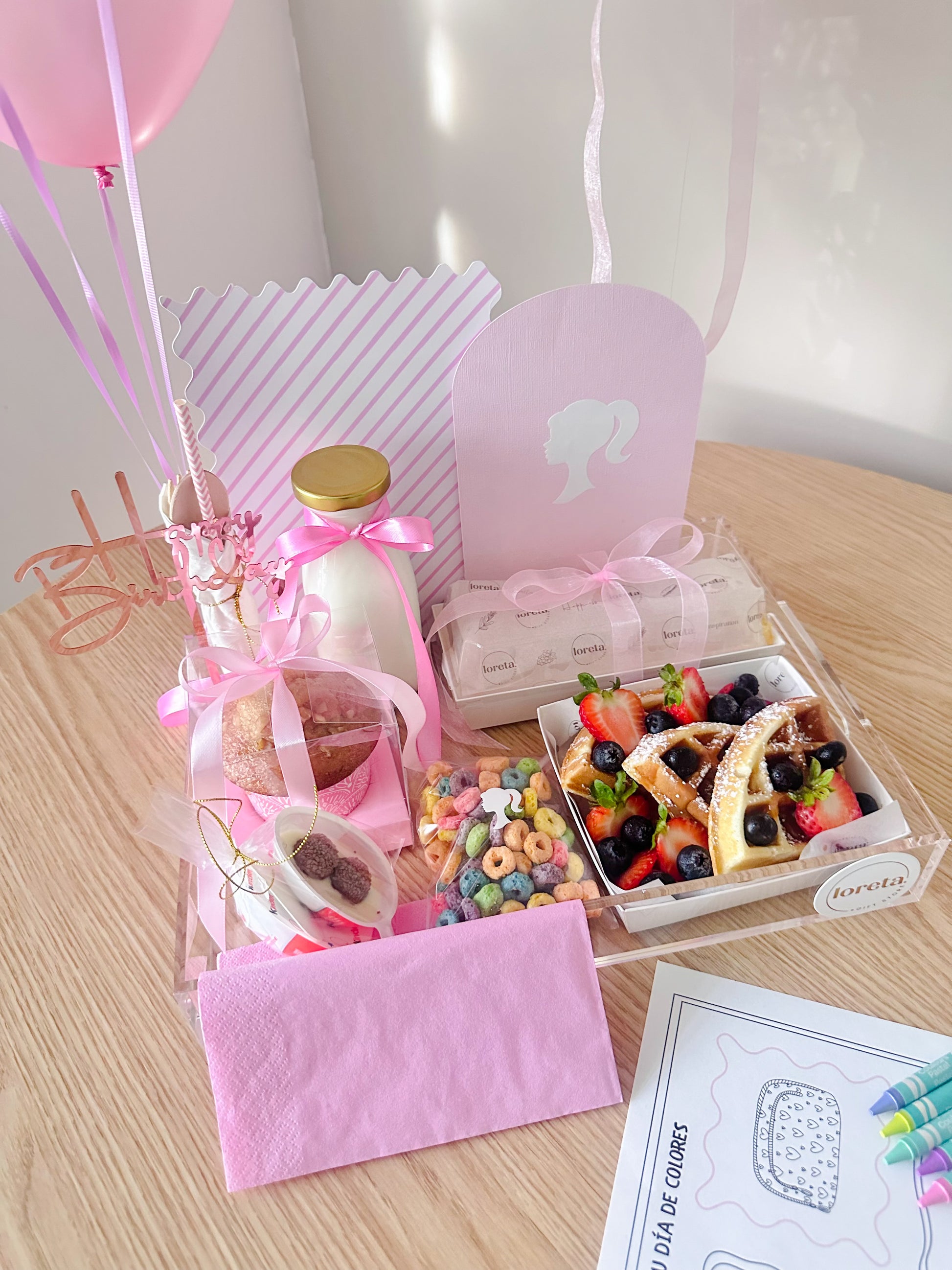 El Desayuno La Gomera es una de nuestras opciones más elegantes para tener una experiencia que combina sabor y sofisticación. Presentado en una elegante bandeja de acrílico transparente para sorprender a tus seres queridos con un toque de lujo en la mañana. Incluye una botella de champaña mini y jugo de naranja natural para preparar una mimosa al instante y globos de inspiración.