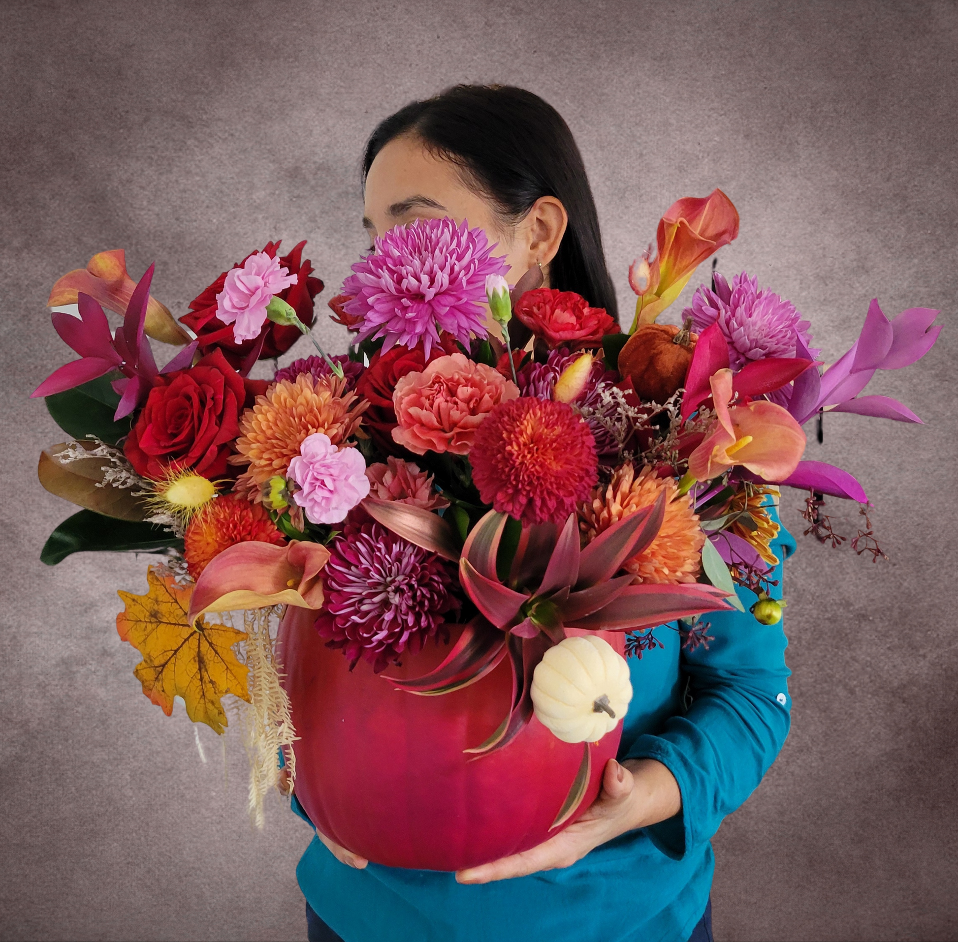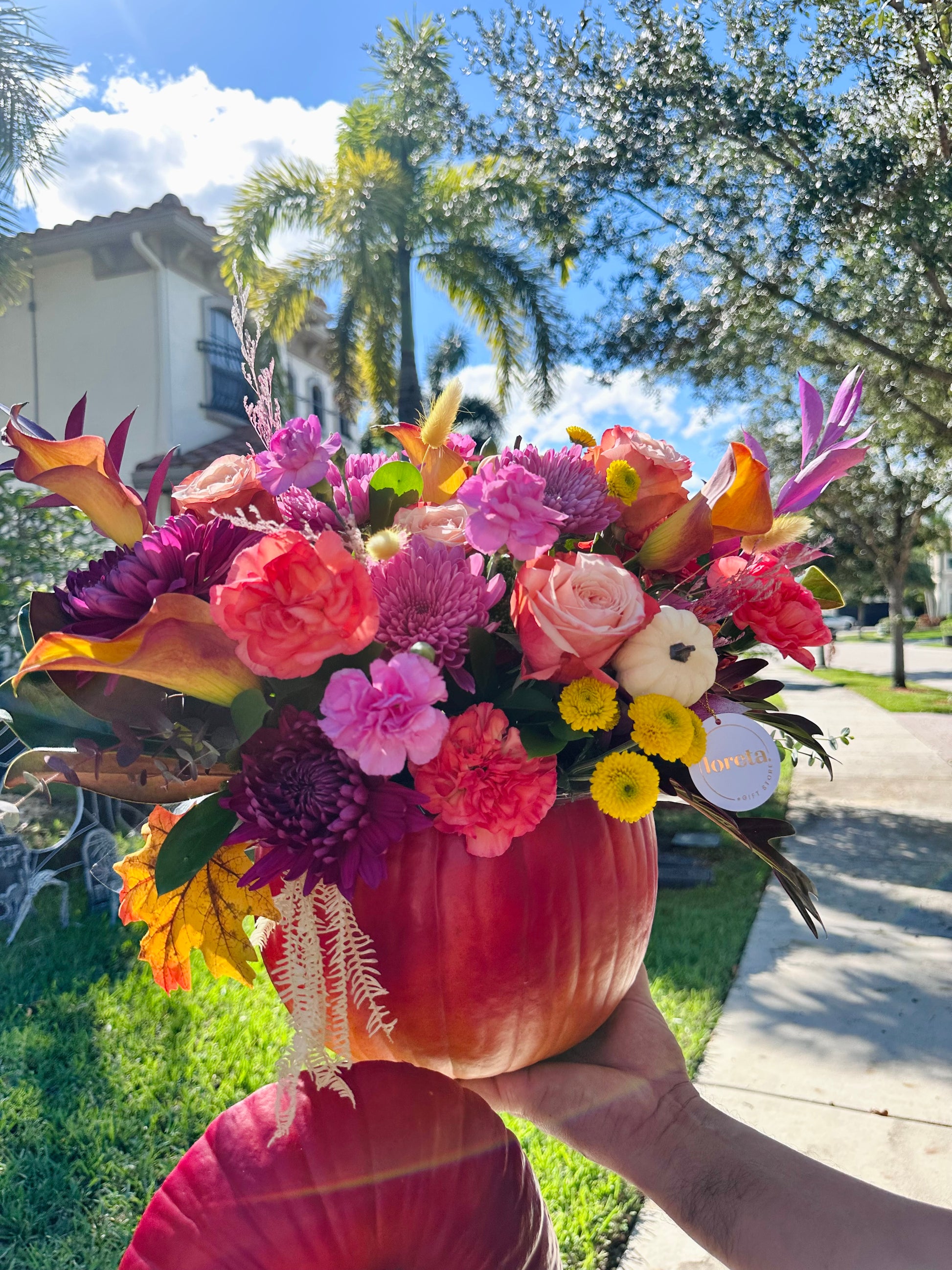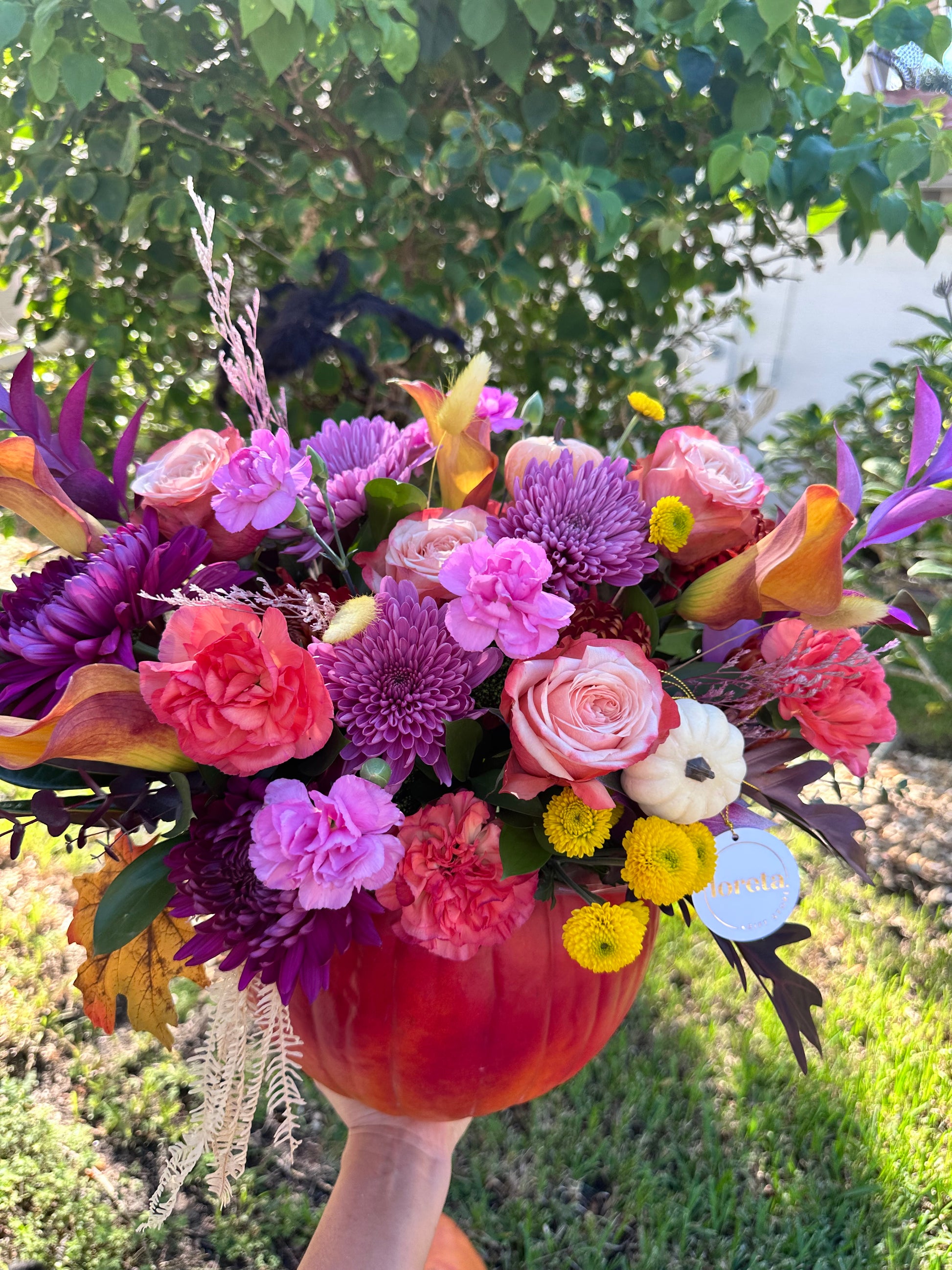 This natural Halloween pumpkin has been transformed into a unique work of art. Hand-painted and adorned with fresh and painted flowers, it combines the beauty of nature with an artistic, original touch. Perfect for adding elegance and creativity to the season, this piece becomes the centerpiece, ideal for any space looking to celebrate Halloween with style and sophistication.