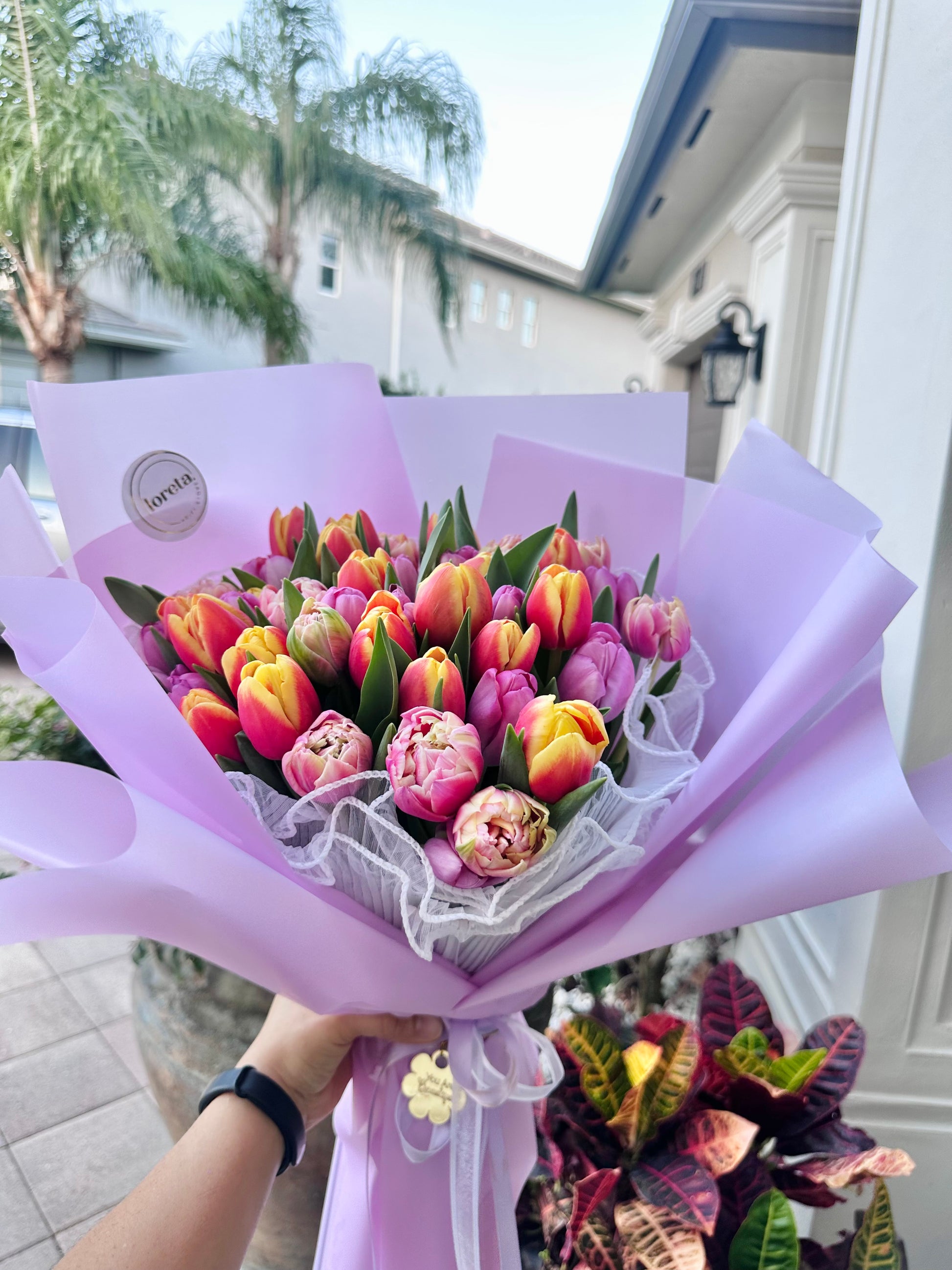 Tulips are not only known for their beauty, but also for their ability to bloom during tulips season, making them an ideal option to bring freshness and life to any space. Our bouquet is available with same-day delivery, ensuring that your message of love or appreciation arrives on time. If you are looking for a tulips bouquet for a special occasion or to surprise someone, our Enchanted Romance Bouquet is the perfect choice. Find fresh tulips and enjoy their beauty in full bloom.